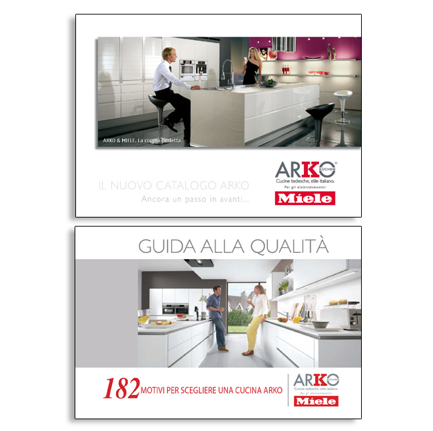 Studio del logo, linea coordinata, brochure e catalogo prodotti, sito web, per il nuovo brand di cucine tedesche dal design italiano.